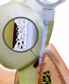 მუშაობის პროცესში იმსტრუმენტს მიეწოდება ჰიდროქსიაპატიტის ფხვნილის ნაკადი ნაწილაკების ზომით 10 ნმ, რისი საშუალებითაც პათოლოგიური ჯიბიდან სრულად შორდება ღრძილქვეშა ქვები და ნადებები, ენდოტოქსინები, პრიალდება კბილის ზედაპირი. თავისთავად ჰიდროქსიაპატიტი ხელს უწყობს ღრძილის სწრაფად აღდგენას პროცედურის შემდეგ.